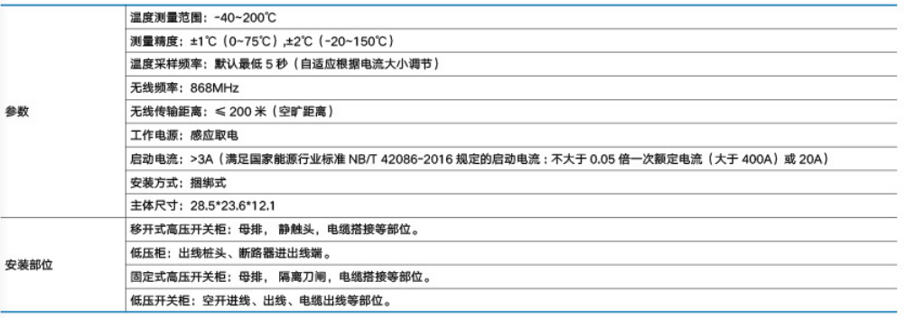 本系列无线测温传感器用于测量高压带电物体表面或接点处的温度,如高压开关柜内的裸露触点、母线连接处、户外刀闸及变压器等的运行温度。无线温度传感器是由温度传感器、信号调理放大、逻辑控制电路、无线调制接口等组成,传感器将采集到的温度信号通过无线网络发送到无线式温度监测仪。